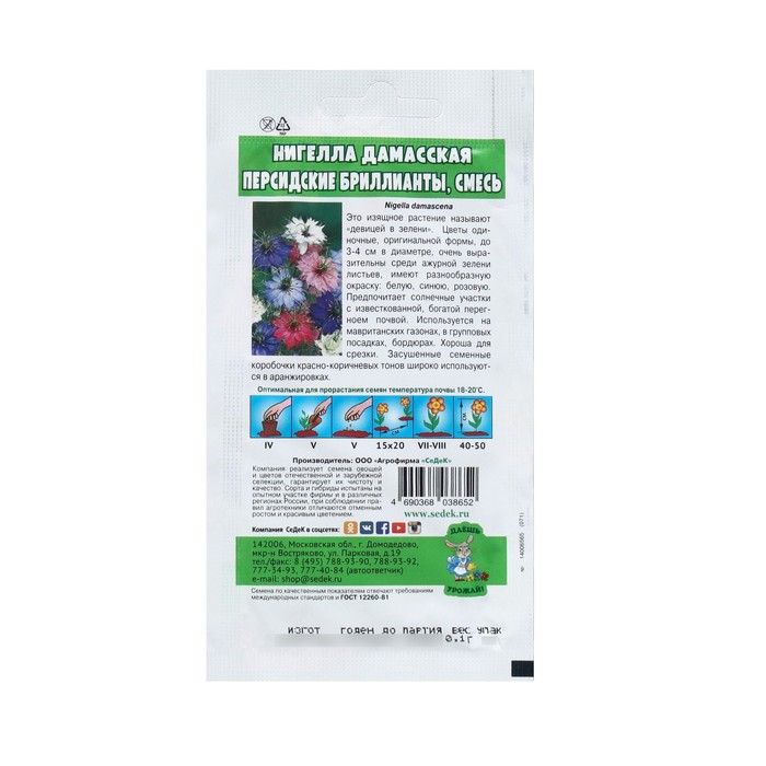 Семена Цветов Нигелла «Персидские бриллианты», 0.1 г, «СеДеК»