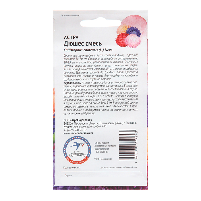 Семена цветов Астра «Дюшес смесь», 0.3 г, «Агросидстрейд»