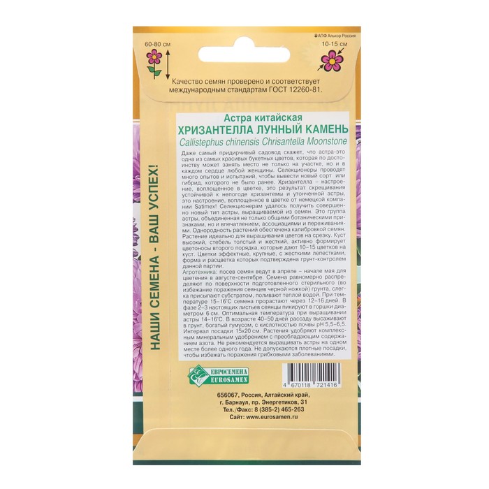 Семена цветов астра китайская «Хризантелла Лунный Камень», однолетник,5 шт.