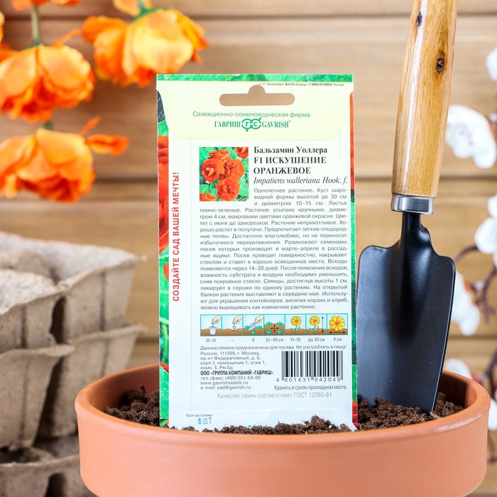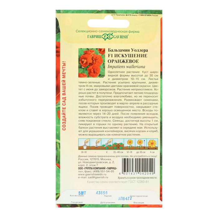 Семена цветов Бальзамин "Уоллера Искушение оранжевое" F1, О, ц/п, 4 шт.