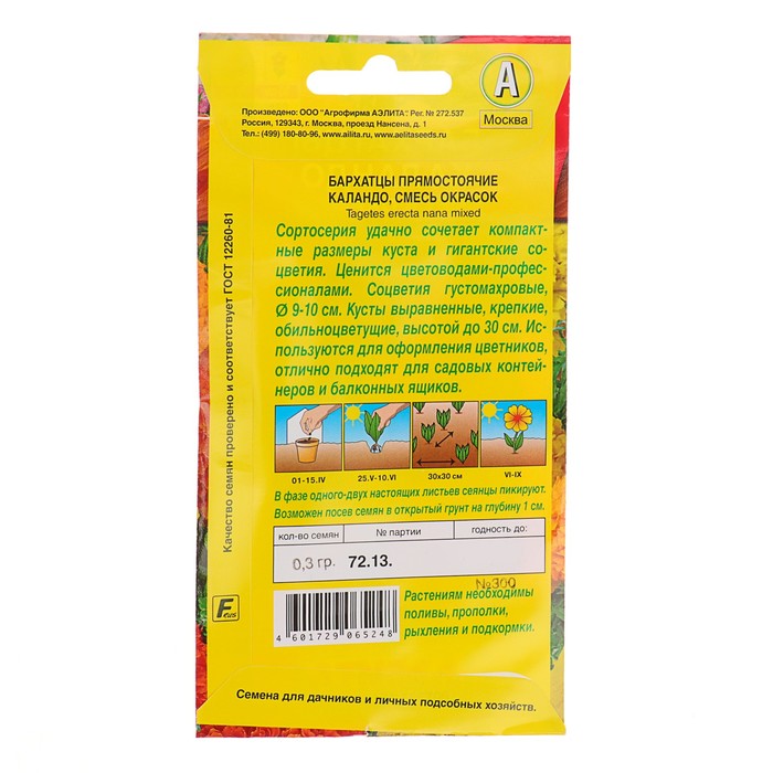 Семена цветов Бархатцы «Каландо», смесь окрасок, 0.1 г