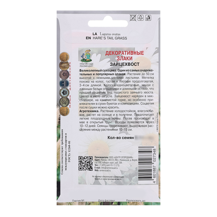 Семена цветов Декоративные злаки «Зайцехвост», 0.1 г