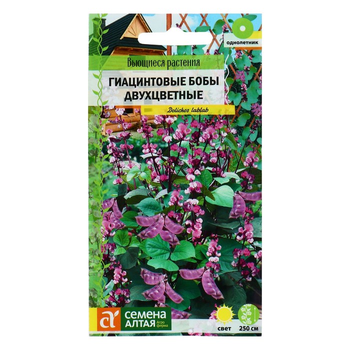 Семена цветов Гиацинтовые бобы "Двухцветные", ц/п, О, ц/п, 1 г