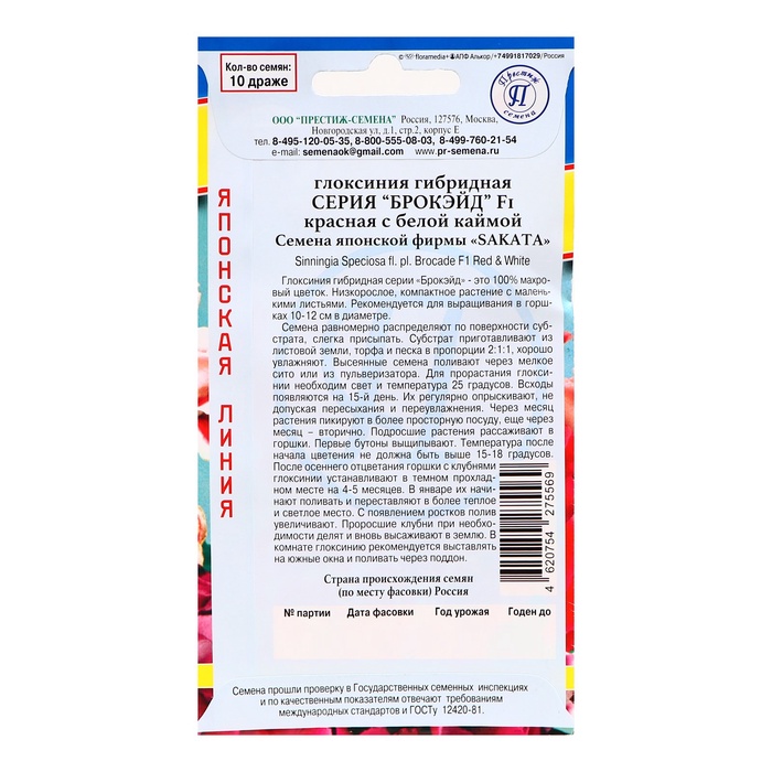 Семена цветов Глоксиния «Брокэйд», Красная с каймой, F1, драже, 10 шт., «Престиж семена»