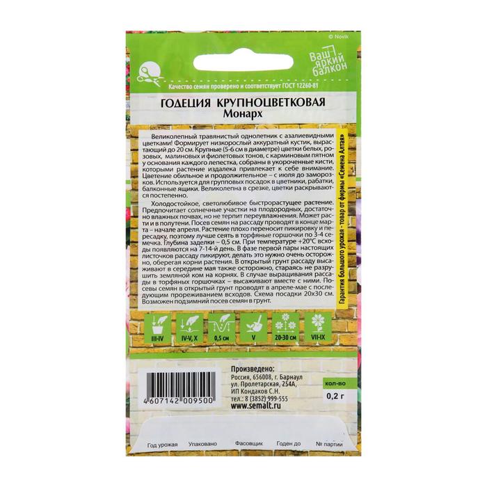 Семена цветов Годеция «Монарх», 0.05 г, «Семена Алтая»