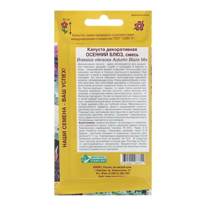 Семена цветов Капуста декоративная "Осенний блюз" смесь, 30 шт