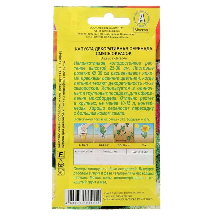 Семена цветов Капуста декоративная "Серенада", смесь окрасок, О, 0,1 г
