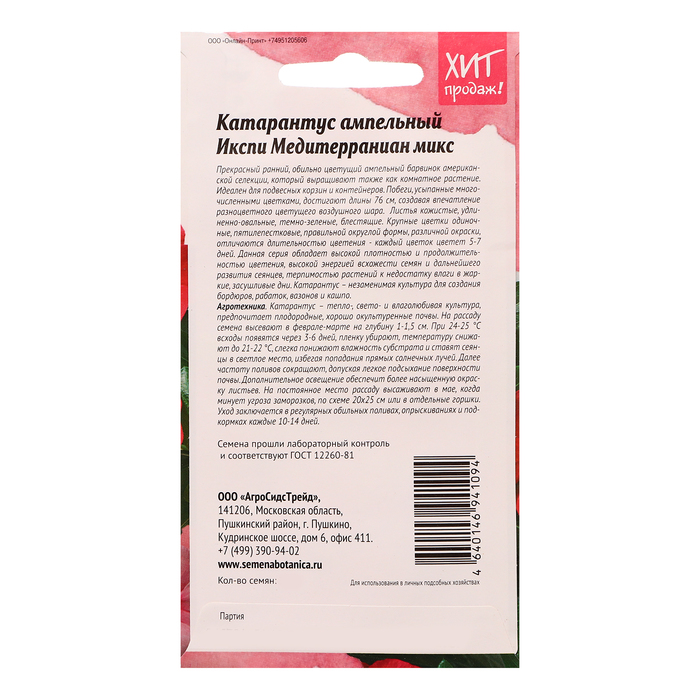 Семена цветов Катарантус "Ампельный Икспи Медитерраниан Микс", 7 шт