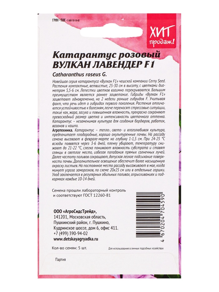 Семена цветов Катарантус розовый "Вулкан Лавендер F1", 5 шт