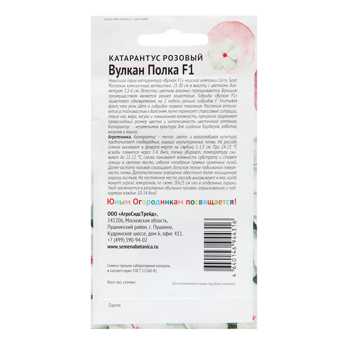 Семена цветов Катарантус розовый "Вулкан Полка F1", 5 шт