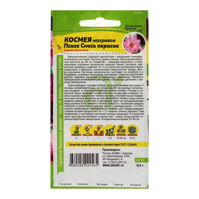 Семена цветов Космея "Психе", ц/п, махровая смесь, 0,2 г