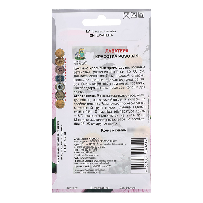 Семена цветов Лаватера "Красотка", розовая, 0,3гр.
