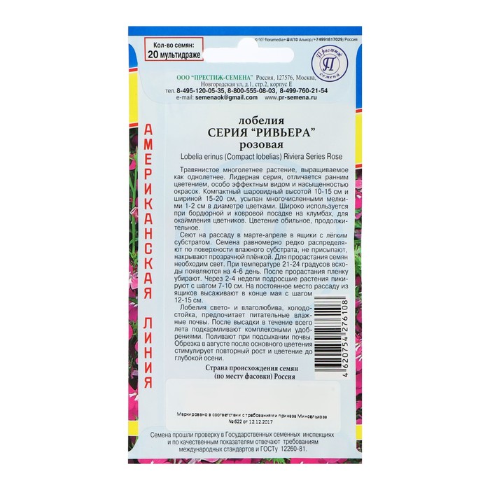 Семена цветов Лобелия кустовая "Ривьера" Розовая, О, мультидраже 5 шт