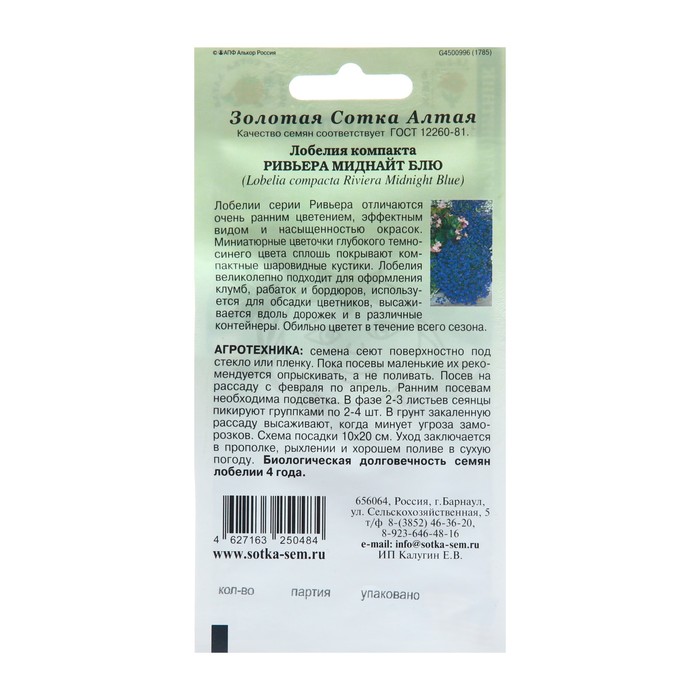 Семена цветов Лобелия Ривьера «Миднайт Блу», 10 шт.