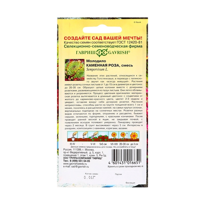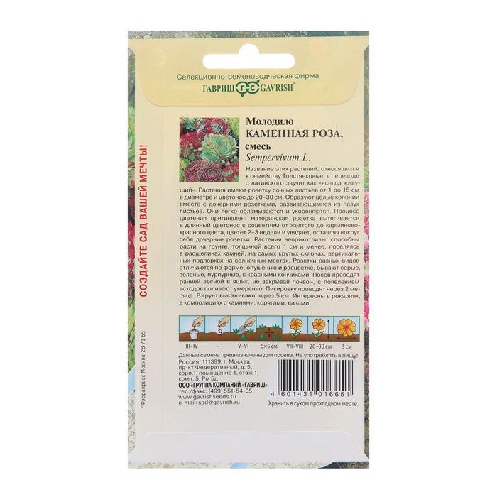 Семена цветов Молодило "Каменная Роза", ц/п, 0,01 г