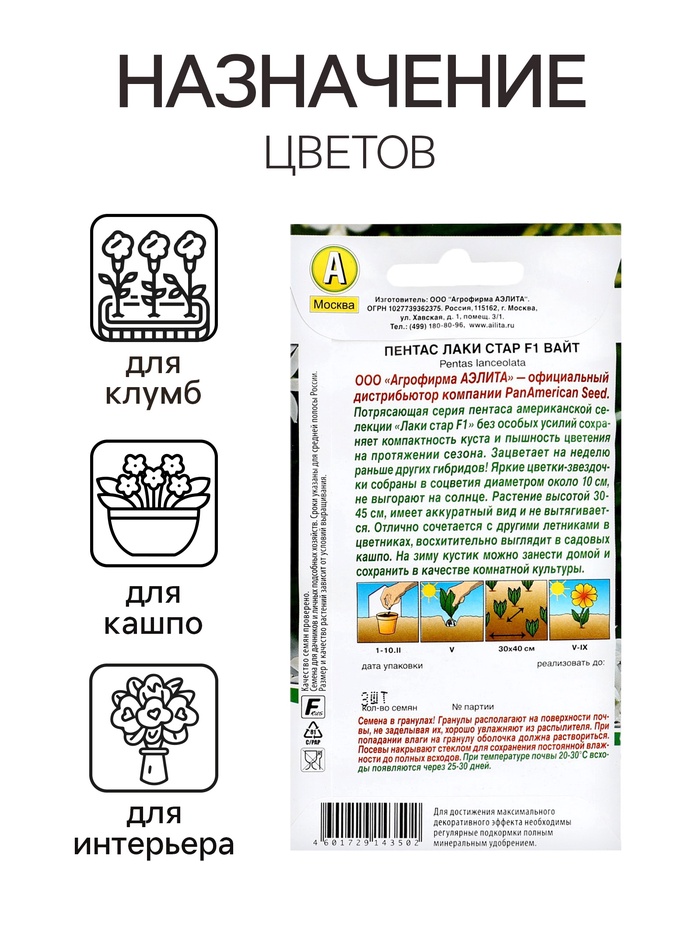 Семена цветов Пентас "Лаки стар" F1 вайт, ц/п, 3 шт