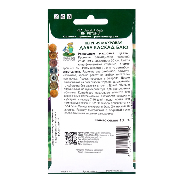 Семена цветов Петуния махровая "Дабл каскад блю", 10шт.