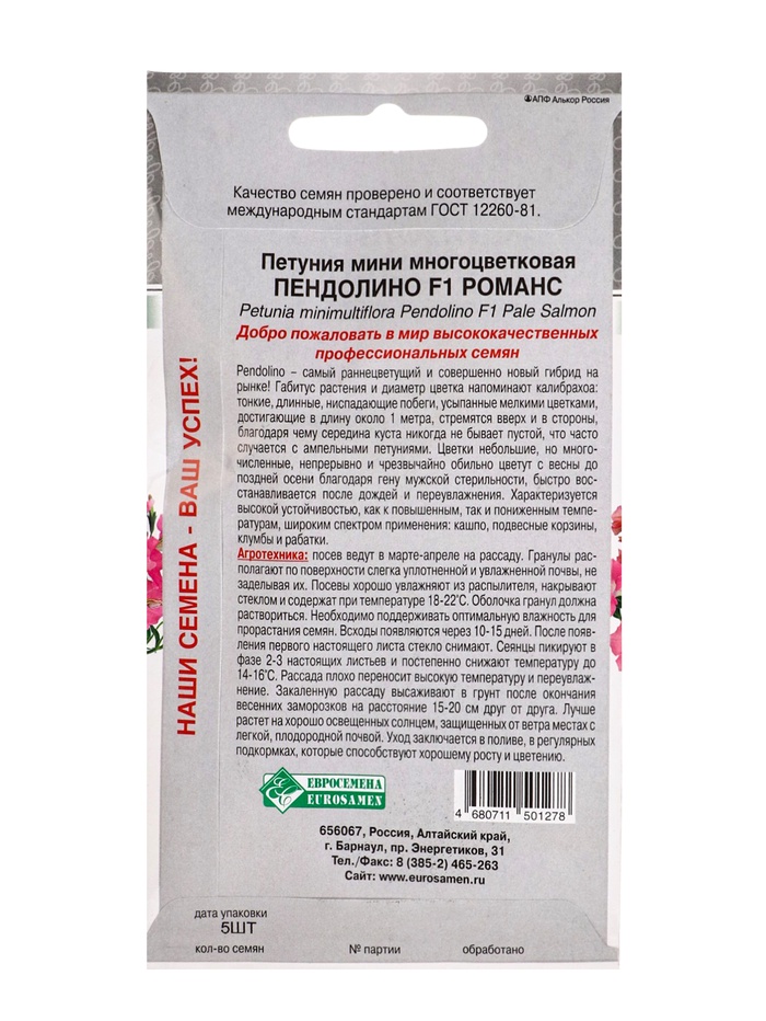 Семена цветов петуния минимультифлора «ПЕНДОЛИНО F1 Романс», 5 драже