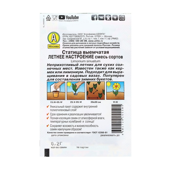 Семена Цветов Статица "Летнее настроение", смесь сортов, 0,1 г