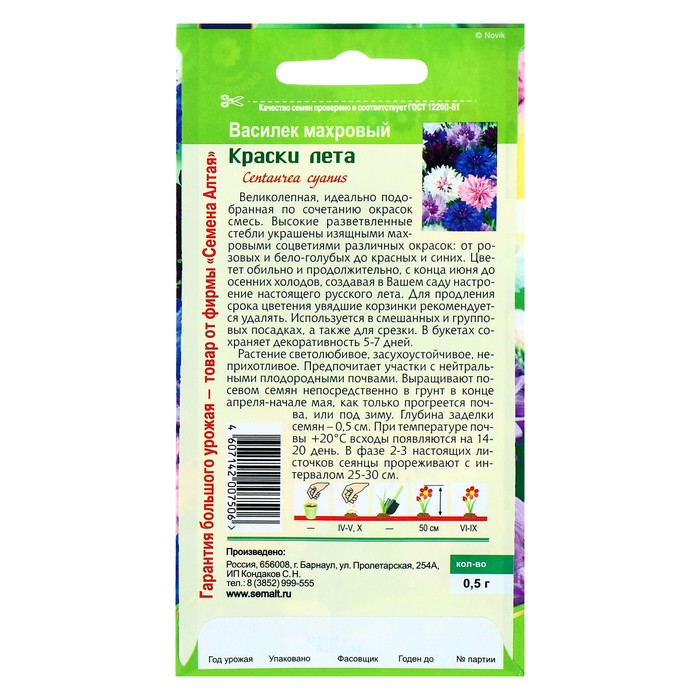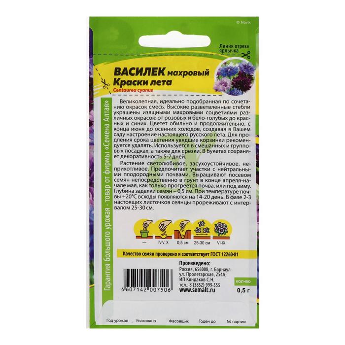 Семена цветов Василек «Краски лета», смесь, 0.3 г, «Семена Алтая»