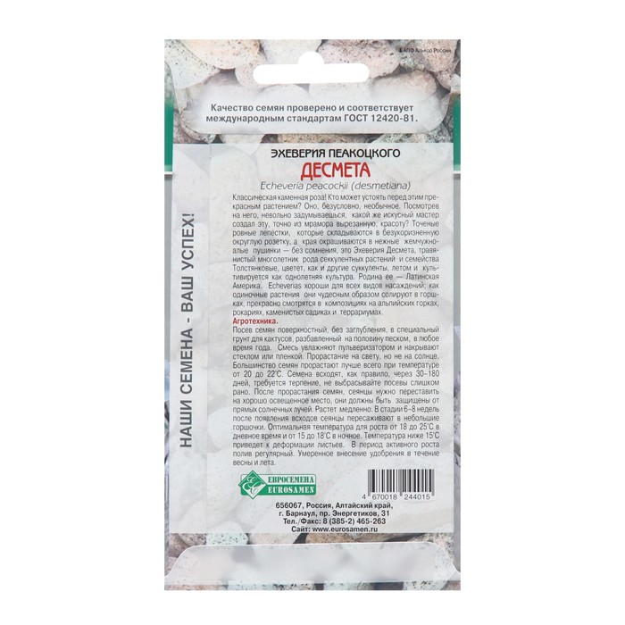 Семена эхеверия пеакоцкого «Десмета», 5 шт.