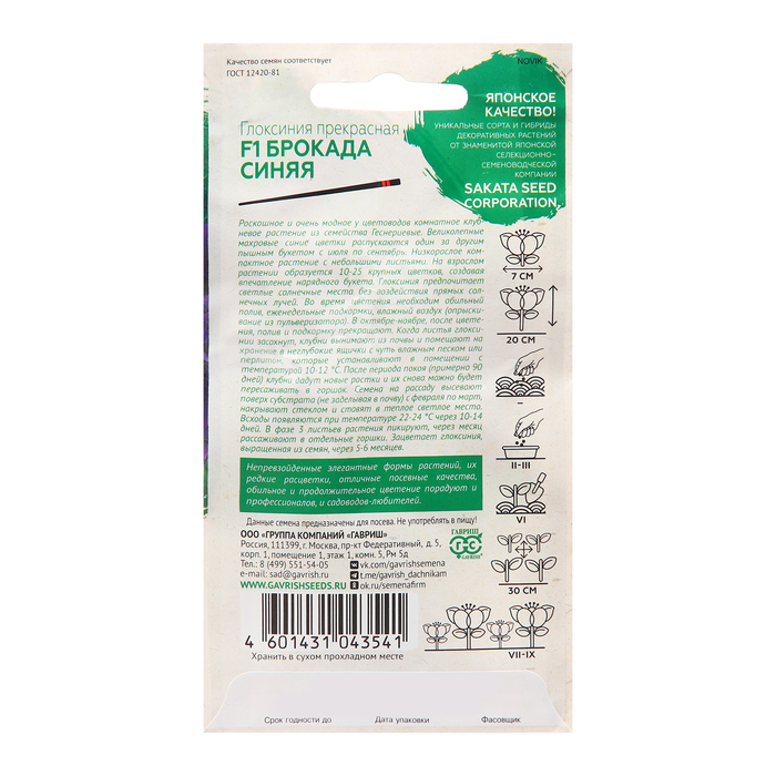 Роскошное и очень модное среди цветоводов комнатное клубневое растение из семейства Геснериевые. Великолепные махровые, синие цветки распускаются один за другим пышным букетом с мая по сентябрь. Низкорослое компактное растение с небольшими листьями. На взрослом растении образуется 10-25 крупных цветков, создавая впечатление нарядного букета. Глоксиния предпочитает светлые, солнечные места без воздействия прямых солнечных лучей. Во время цветения необходим обильный полив, еженедельные подкормки, влажный воздух (опрыскивание из пульверизатора). В октябре-ноябре, после цветения, полив и подкормку прекращают. Когда листья глоксинии засохнут, клубни вынимают из почвы и помещают на хранение в неглубокие ящички с чуть влажным песком или перлитом, которые устанавливают в помещении с температурой 10-12°С. После периода покоя (примерно 90 дней) клубни дадут новые ростки и их снова можно будет пересаживать в горшок. Семена на рассаду высевают поверх субстрата (не заделывая в почву) с февраля по март, накрывают стеклом и ставят в теплое, светлое место. Всходы появляются при температуре 22-24°С, через 10-14 дней. В фазе 3-х листьев растения пикируют, через месяц рассаживают в отдельные горшки. Зацветает глоксиния, выращенная из семян через 9-10 месяцев.