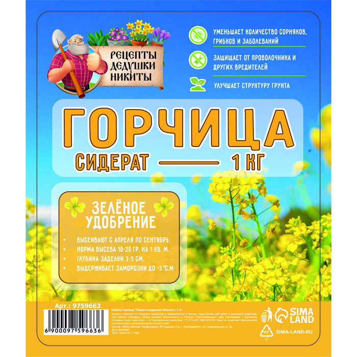 Семена Горчица "Рецепты дедушки Никиты", 1 кг