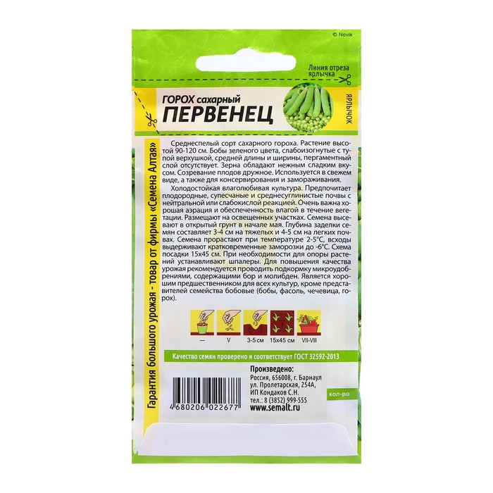 Семена Горох "Первенец Сахарный", ц/п, 10 гр.
