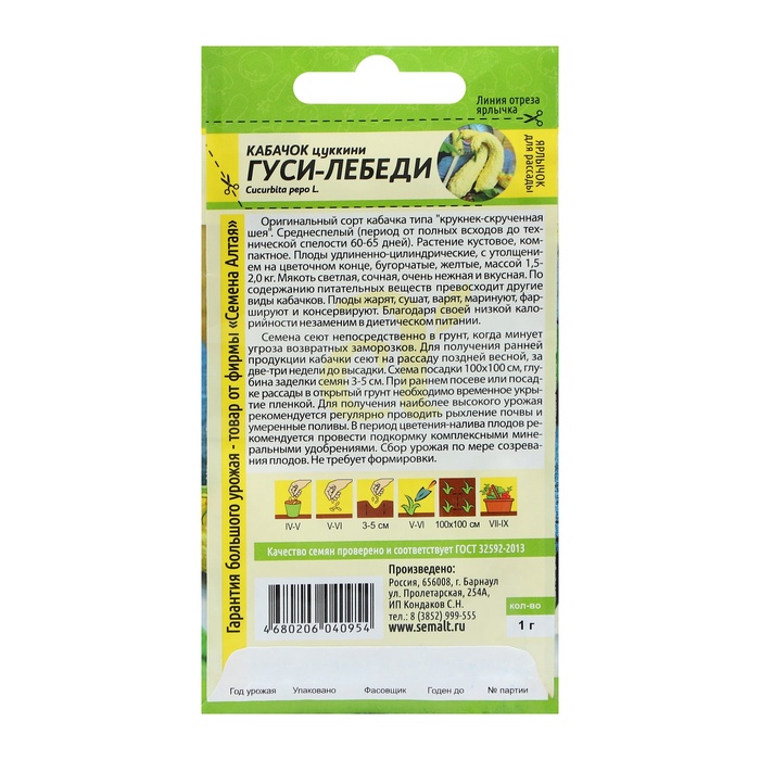 Семена Кабачок "Гуси-Лебеди", Сем. Алт, ц/п, 1 г