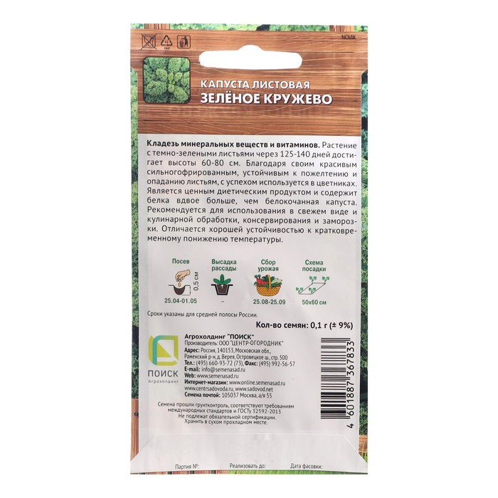 Семена Капуста листовая "Зеленое кружево", 0,1 г