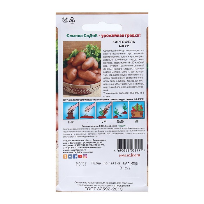 Семена картофель «Ажур», 0.02 г