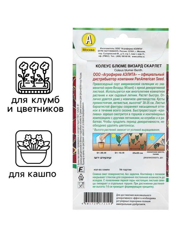 Семена Колеус блюме Скарлет Мн Сел. PanAmerican Золотая серия Ц/П 5 шт