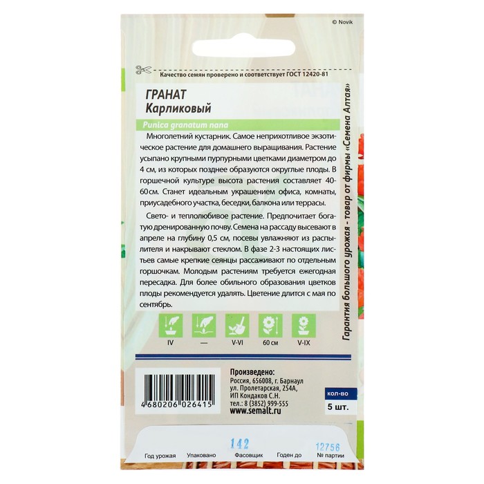 Семена комнатных цветов Гранат Карликовый, Мн, ц/п, 5 шт.