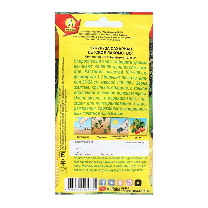 Семена Кукуруза сахарная "Детское лакомство", 7г