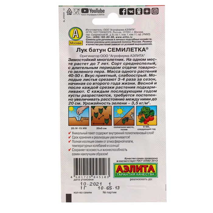Семена Лук батун "Семилетка", ц/п, 0,5 г