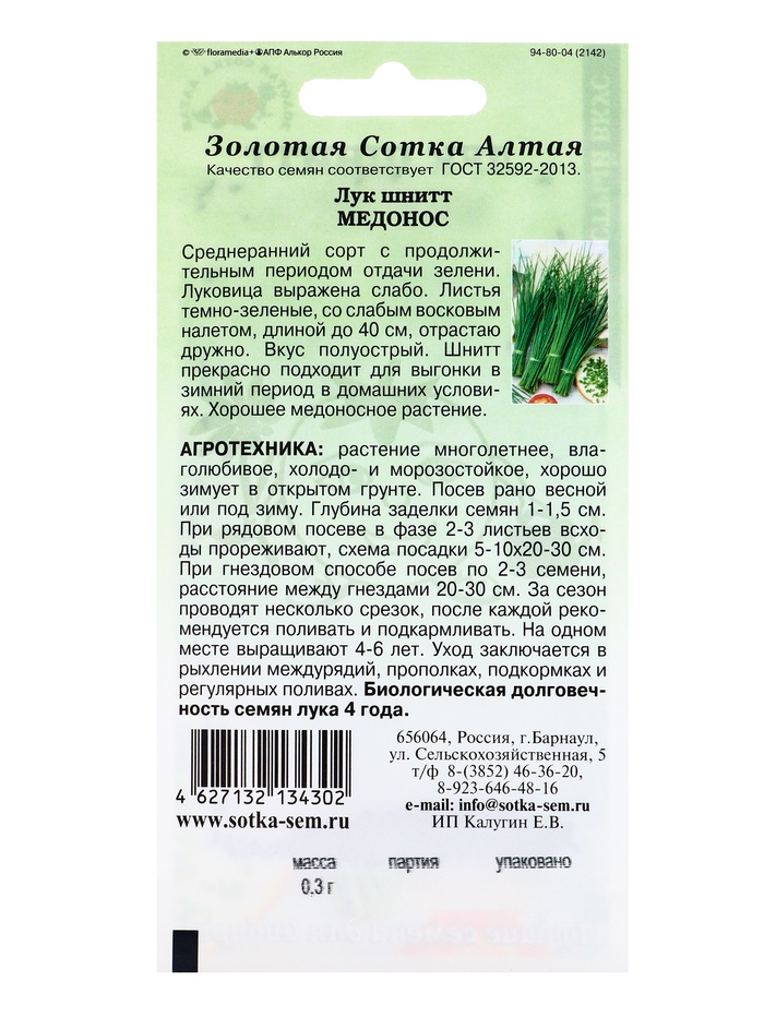 Семена Лук «Шнитт Медонос», 0.3 г, «Золотая Сотка Алтая»