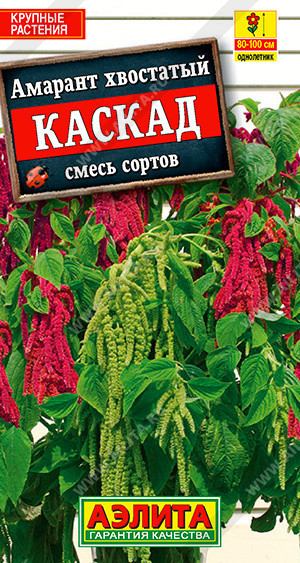 Эффектный, быстрорастущий, крупный летник. Поникающие метельчатые соцветия длиной 60-80 см напоминают красочный водопад. Растение имеет мощные, прямостоячие стебли высотой 80-100 см. Смесь отлично смотрится группами на заднем плане цветников или вдоль забора. С помощью живой изгороди из амаранта можно зонировать садовый участок. Высушенные соцветия яркие крепкие и очень декоративные.