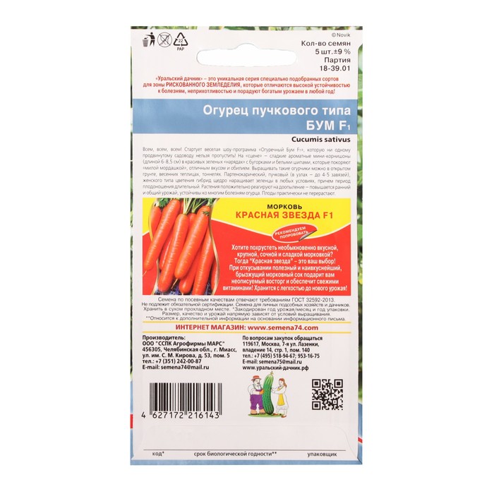 Раннеспелый (от всходов до начала плодоношения 39-44 дня) партенокарпический гибрид с обильным пучковым плодоношением для открытого и защищенного грунта. Растение генеративного типа, одновременно в узлах формируется не менее 5. великолепных огурчиков, при правильном формировании образуется целый пучковый бум. Зеленцы цилиндрические, длиной 9-11 см, диаметром 3-3,5 см, насыщенного зелёного цвета, среднебугорчатые не перерастают, прекрасного товарного вида, без горечи и пустот. При солении и мариновании сохраняют форму, плотность и упругость. Отличительной особенностью является способность переносить похолодания без потери интенсивности плодоношения.