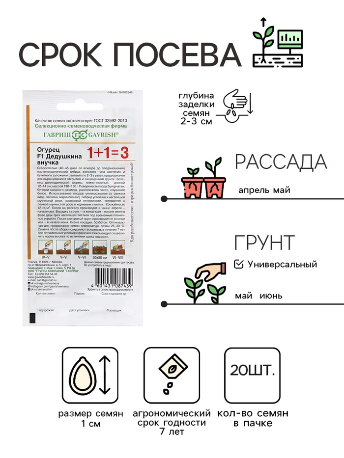 Семена Огурец «Дедушкина внучка», F1, 20 шт., «1+1», «Гавриш»