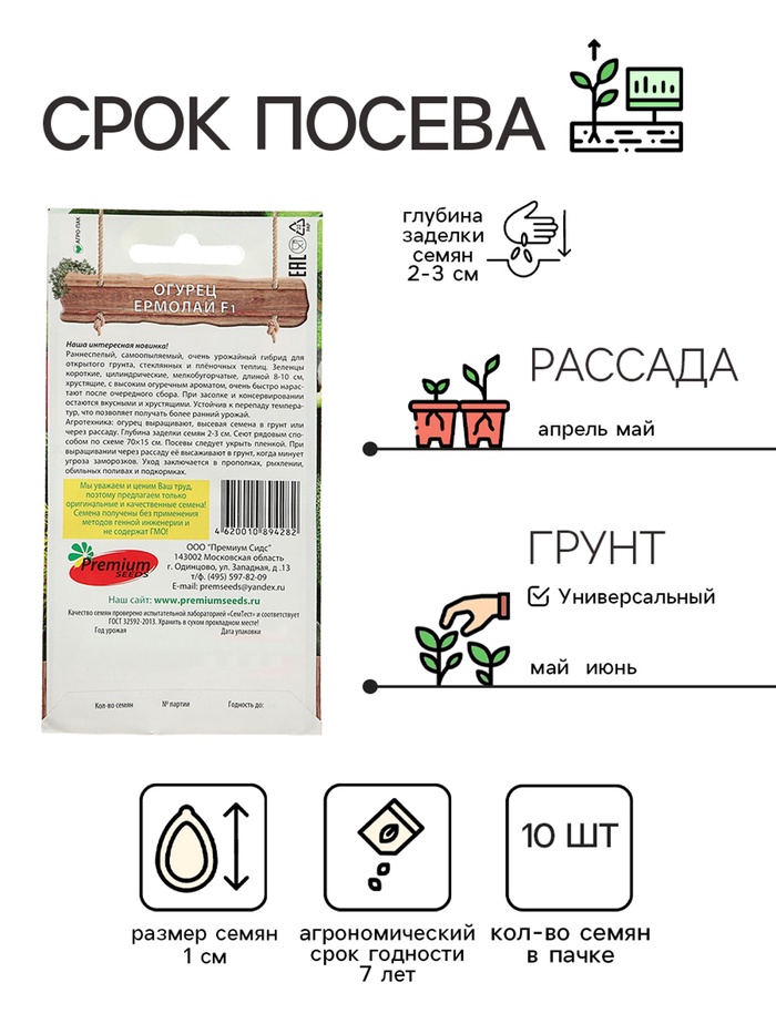 Семена Огурец Ермолай F1, партенокарпический, 10 шт.