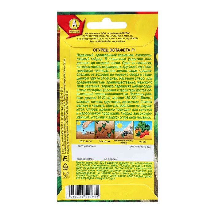 Семена Огурец Эстафета F1 Пч Ц/П 10шт