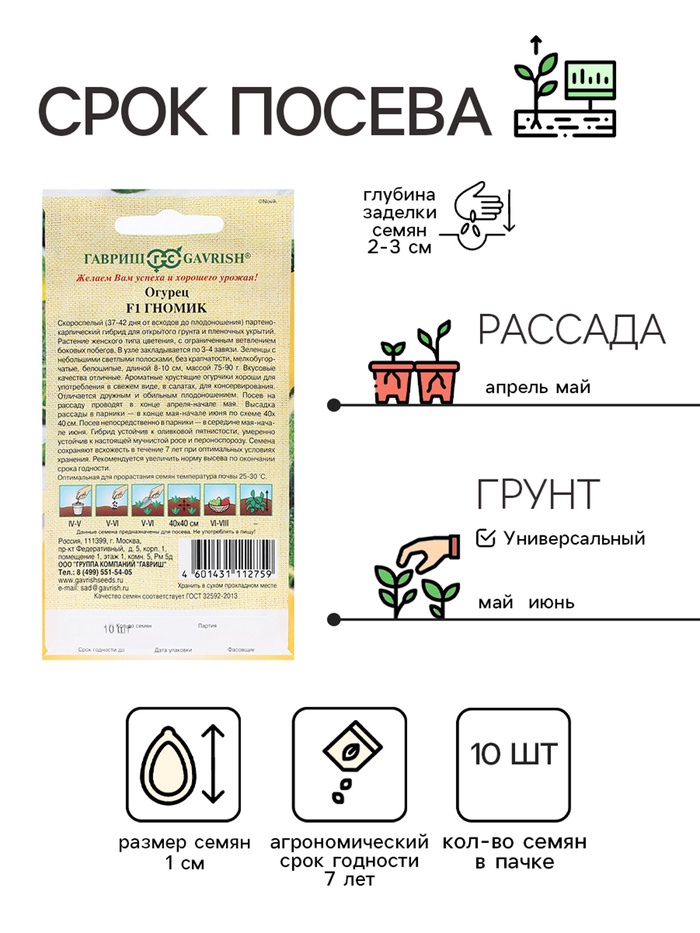 Семена Огурец «Гномик», F1, 10 шт., «Гавриш»