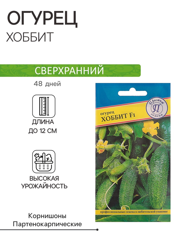 Семена Огурец "Хоббит" F1, раннеспелый, партенокарпический, 5 шт