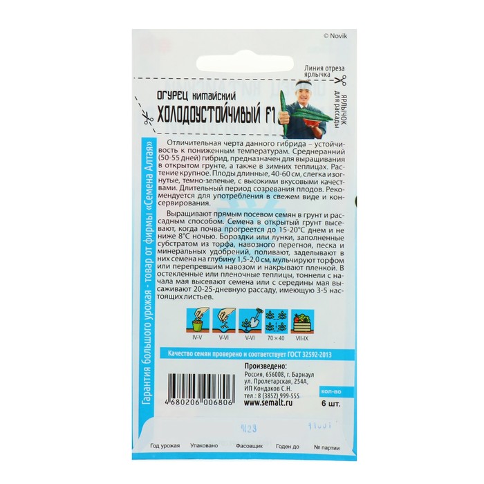 Семена Огурец Китайский "Холодоустойчивый F1", среднеранний, партенокарпический, цп, 6 шт.