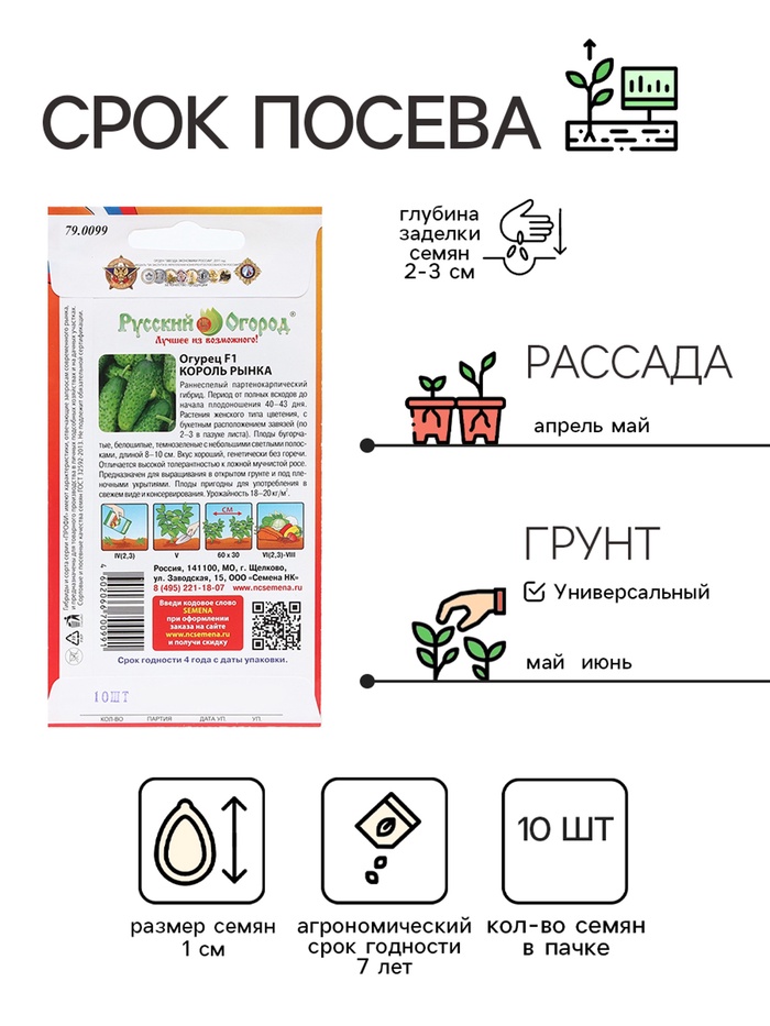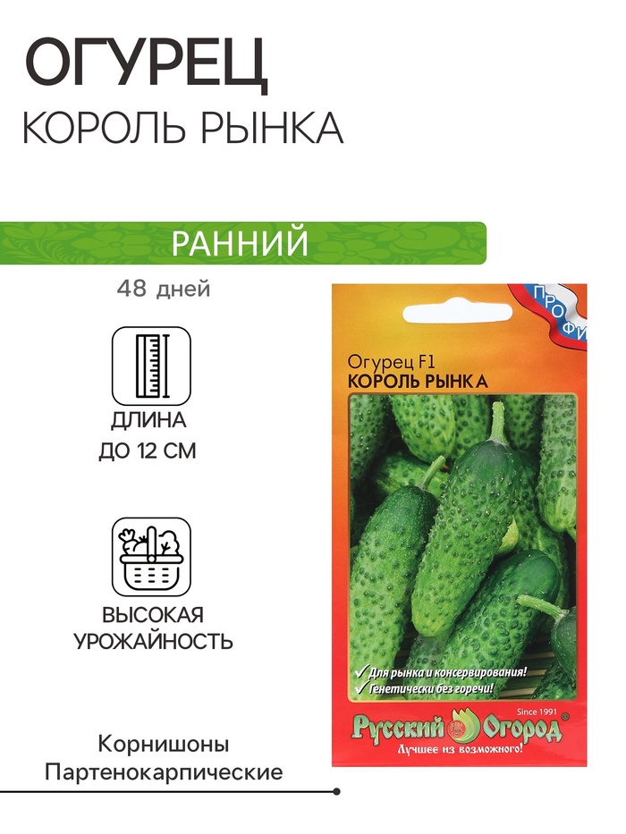 Семена Огурец "Король рынка" F1, серия Профи, раннеспелый, партенокарпический, 10 шт