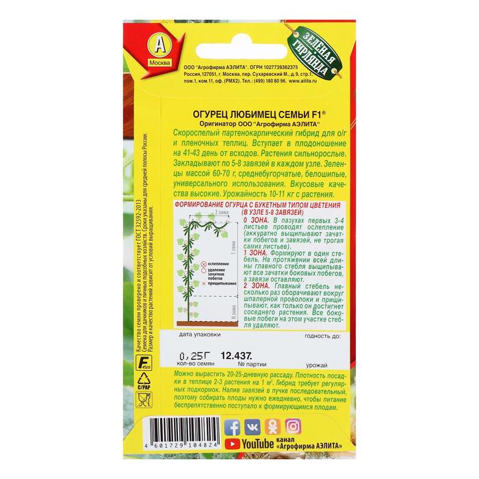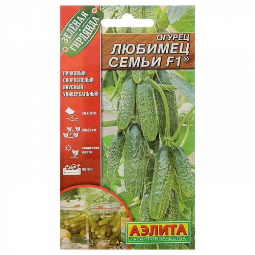 Семена Огурец "Любимец семьи F1", скороспелый, партенокарпический, 10 шт.