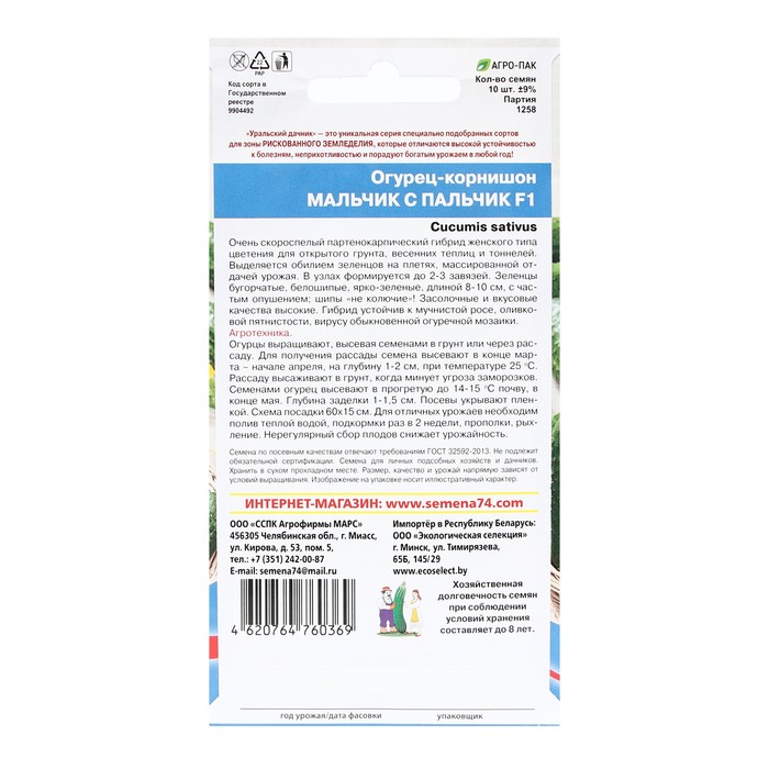 Семена Огурец "Мальчик с Пальчик", корнишон, F1, 10 шт