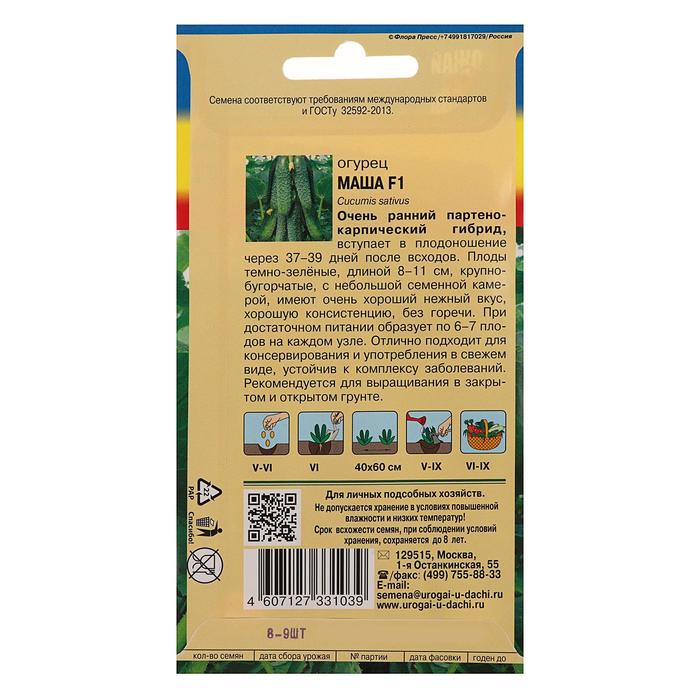 Карпический гибрид, вступает в плодоношение через 37-39 дней после всходов. Плоды темно-зелёные, длиной 8-11 см, крупно бугорчатые, с небольшой семенной камерой, имеют очень хороший нежный вкус, хорошую консистенцию, без горечи. При достаточном питании образует по 6-7 плодов на каждом узле. Отлично подходит для консервирования и употребления в свежем виде, устойчив к комплексу заболеваний. Рекомендуется для выращивания в закрытом и открытом грунте.
