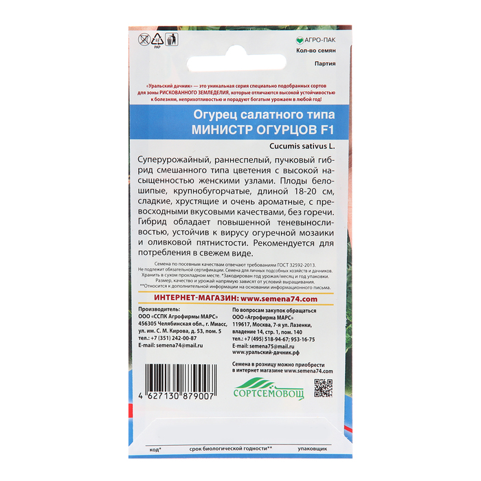 Семена Огурец "Министр огурцов - салатного типа", 10 шт