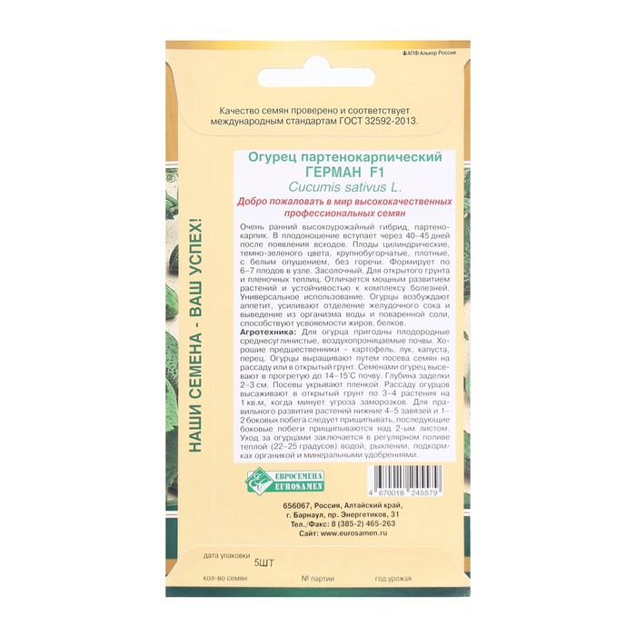 Семена Огурец партенокарпик ГЕРМАН F1, 5